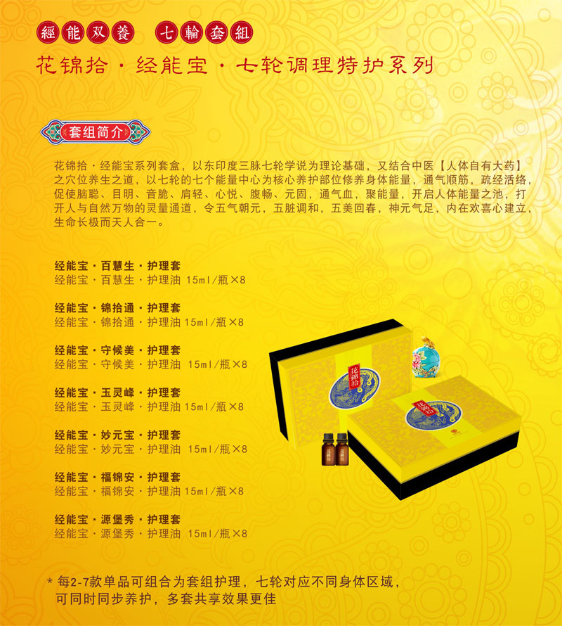 您的位置:首頁 > 品牌介紹 > 花錦拾 > 花錦拾·經能寶七輪調理特護系列